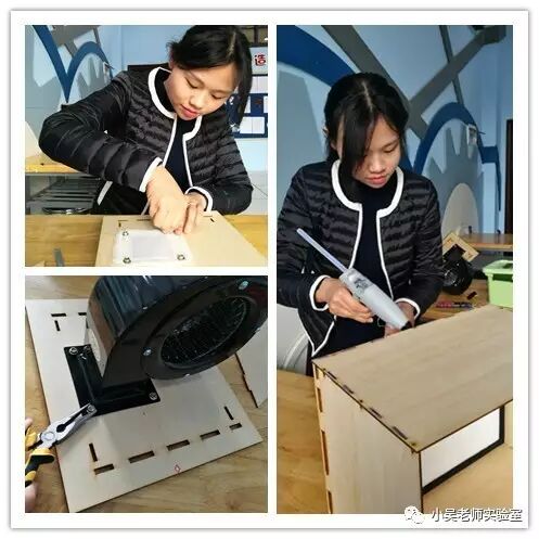 3.2 Use hot melt glue and screws to sterile covers shell and low noise blower, nylon gauze screen pack together.